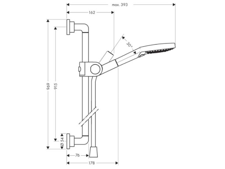 Душевой гарнитур, Hansgrohe, Axor Citterio, размер штанги, мм-900, размер шланга, мм-1600, диаметр ручного душа, мм-120, количество режимов-3, тип струи-RainAir, Rain, WhirlAir, переключение типов струи с помощью кнопки Select, цвет-сталь, комплектация-держатель для душевого шланга с конической гайкой, угол наклона смещается на 30°, хромированные настенные крепления из металла Душевой гарнитур, Hansgrohe, Axor Citterio, цвет-сталь