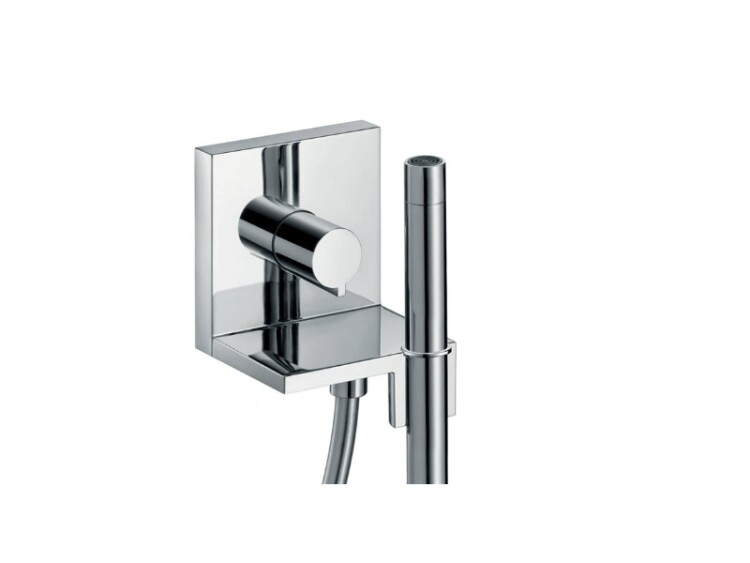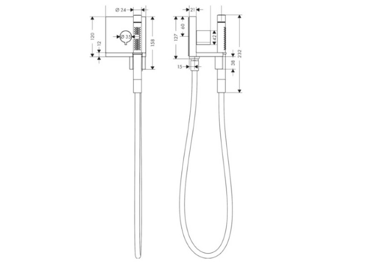 Душевой набор, Hansgrohe, Axor ShowerCollection, размер душевого диска:диаметр,мм-24, длинна,мм-68, форма лейки-цилиндрическая, количество режимов-2, тип струи-обычная струя, мягкая струя, держатель для душа-есть, шланг-есть, длина шланга, мм-1250, шланговое подключение-есть, цвет-шлифованное золото Душевой набор, Hansgrohe, Axor ShowerCollection, цвет-шлифованное золото