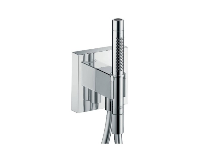Душевой набор, Hansgrohe, Axor Starck, размер душевого диска, мм-24*139, форма лейки-цилиндрическая, количество режимов-2, держатель для душа-есть, шланг-есть, с металлическим напылением, длина шланга, мм-1250, шланговое подключение-есть, цвет-полированная бронза, металлическая розетка,мм-120*120 Душевой набор, Hansgrohe, Axor Starck, цвет-полированная бронза