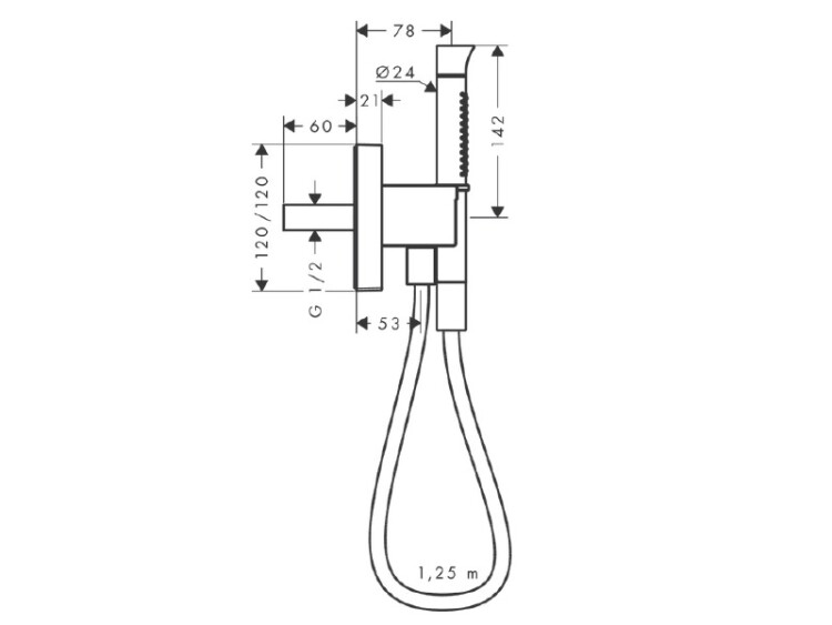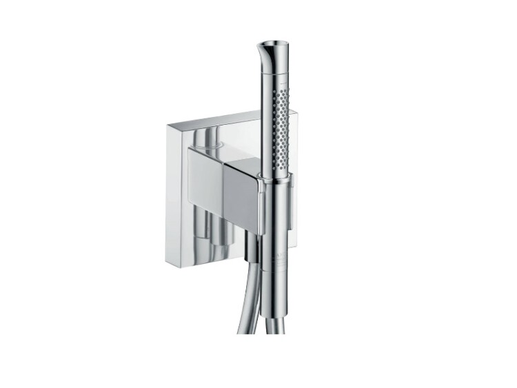 Душевой набор, Hansgrohe, Axor Starck Organic, ручной душ-"палочка",размер душевого диска, мм-24*142, форма лейки-цилиндрическая, количество режимов-2, держатель для душа-есть, шланг-есть, с металлическим эффектом, длина шланга, мм-1250, шланговое подключение-есть, цвет-шлифованный черный хром, с металлической розеткой Душевой набор, Hansgrohe, Axor Starck Organic, цвет-шлифованный черный хром
