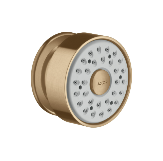 Форсунка, Axor, Axor Showers, боковая, форма-круглая, размер душевого диска,мм-65, 1 режим, тип струи-Rain, с регулируемым углом наклона, цвет-бронза шлифованная Форсунка, Axor, Axor Showers, боковая, цвет-бронза шлифованная