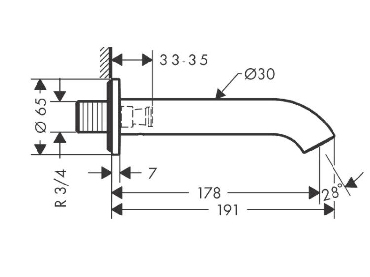 Излив, Hansgrohe, Axor Uno, тип установки-настенный, вынос излива, мм-178, стандарт подводки-3/4", цвет-хром, с розеткой, расход воды-20 л/мин, тип струи-обычная струя Излив, Hansgrohe, Axor Uno, цвет-хром