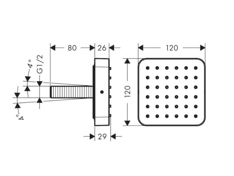 Модуль для душа, Hansgrohe, Axor Citterio E, форма-квадратная, цвет-шлифованное золото, боковая форсунка размером,мм- 120*120, пять уровней регулировки угла струи, можно использовать в качестве верхнего душа, душа для плечевой зоны или боковой форсунки, тип струи-обычная, каскад, хромированный душевой диск, соединительная резьба-G ½ Модуль для душа, Hansgrohe, Axor Citterio E, цвет-шлифованное золото