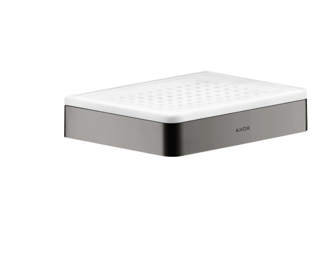 Мыльница, Axor, Axor Universal Softsquare, ширина, мм-150, глубина, мм-110, высота, мм-31, тип установки-настенный/на рейлинг, материал-стекло, материал держателя-металл, цвет-полированный чёрный хром, расстояние между отверстиями,мм-108 Мыльница, Axor, Axor Universal Softsquare, шгв 150*110*31, цвет-полированный чёрный хром