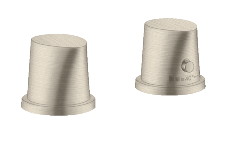 Смеситель для ванны, Hansgrohe, Axor Starck Organic, тип регулирования воды-термостатический картридж, тип установки-на борт ванны, отверстия для монтажа-2, внутренняя часть-необходимо заказать, цвет-шлифованный никель Смеситель для ванны, Hansgrohe, Axor Starck Organic, цвет-шлифованный никель
