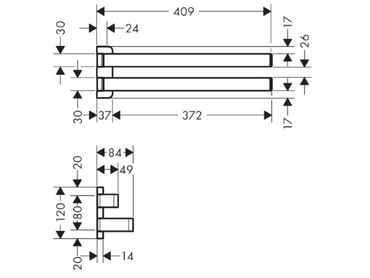 Полотенцедержатель, Hansgrohe, Axor, двойной, поворотный, ширина, мм-409, глубина, мм-84, высота, мм-120, тип установки-настенный, материал-металл, цвет-полированная бронза Полотенцедержатель, Hansgrohe, Axor, шгв 409*84*120, цвет-полированная бронза
