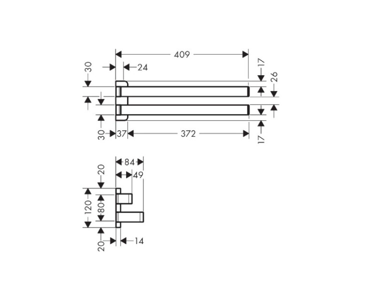 Полотенцедержатель, Hansgrohe, Axor, двойной, ширина, мм-409, глубина, мм-84, высота, мм-120, тип установки-настенный, материал-металл, цвет-полированное золото Полотенцедержатель, Hansgrohe, Axor, шгв 409*84*120, цвет-полированное золото