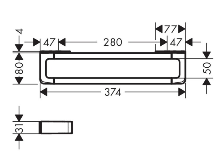 Поручень и рейлинг, Hansgrohe, Axor, ширина, мм-374, глубина, мм-80, высота, мм-31, тип установки-настенный, материал-металл, цвет-шлифованное золото, с пластинами для выравнивания плитки Поручень и рейлинг, Hansgrohe, Axor, шгв 374*80*31, цвет-шлифованное золото