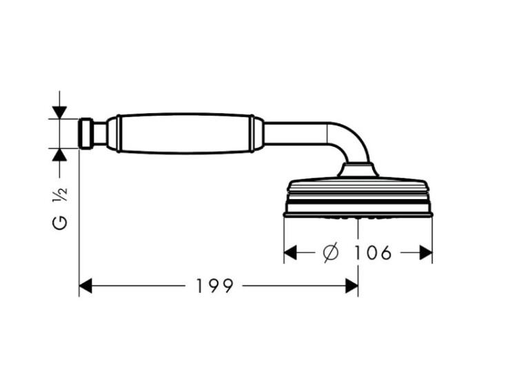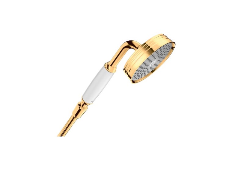 Ручной душ, Hansgrohe, Axor Montreux, размер душевого диска, мм-100, форма-круглая, количество режимов-1, тип струи-RainAir, цвет-полированное золото, с белой рукояткой, промывающийся грязеулавливающий фильтр, соединительная резьба G ½ Ручной душ, Hansgrohe, Axor Montreux, 100, цвет-полированное золото