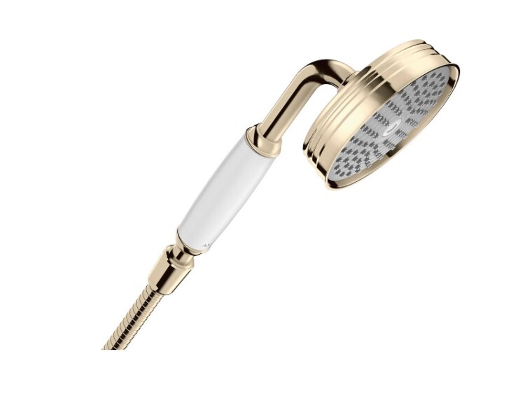 Ручной душ, Hansgrohe, Axor Montreux, размер душевого диска, мм-100, форма-круглая, количество режимов-1, тип струи-RainAir, цвет-полированный никель, с белой рукояткой, промывающийся грязеулавливающий фильтр, соединительная резьба G ½ Ручной душ, Hansgrohe, Axor Montreux, 100, цвет-полированный никель