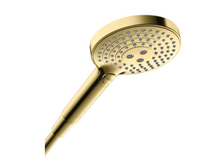 Ручной душ, Hansgrohe, Axor ShowerSolutions, размер душевого диска, мм-125, форма-круглая, количество режимов-3, тип струи-Rain, RainAir, WhirlAir, цвет-шлифованная медь, переключение типов струи с помощью кнопки Select, соединительная резьба G ½ Ручной душ, Hansgrohe, Axor ShowerSolutions, 125, цвет-шлифованная медь