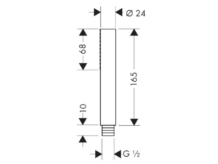 Ручной душ, Hansgrohe, Axor Starck, размер душевого диска, мм-24*68, форма-цилиндрическая, количество режимов-1, тип струи-Rain, цвет-полированное золото, промывающийся грязеулавливающий фильтр, соединительная резьба G ½ Ручной душ, Hansgrohe, Axor Starck, 24*68, цвет-полированное золото