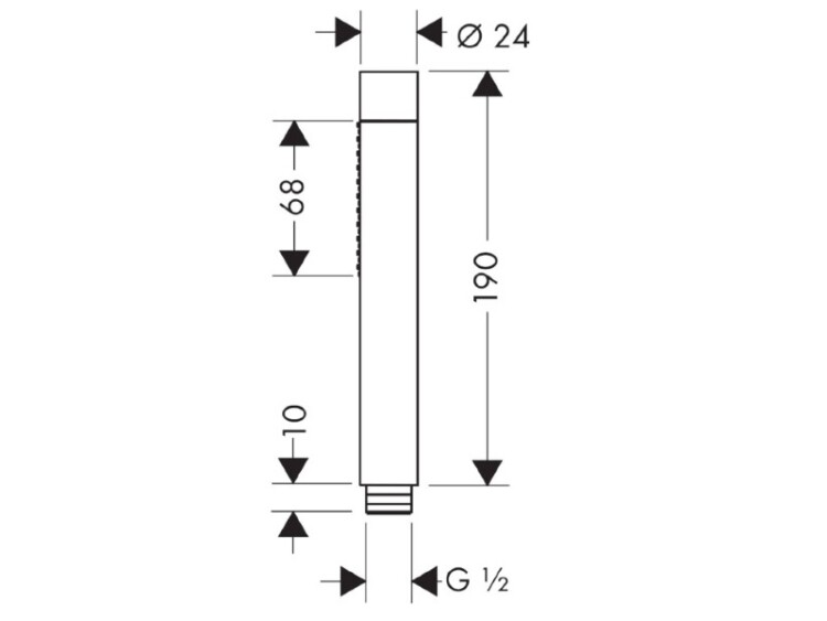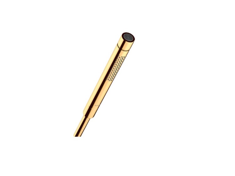 Ручной душ, Hansgrohe, Axor Starck, размер душевого диска, мм-24*68, форма-цилиндрическая, количество режимов-2, тип струи-обычная струя, мягкая струя, материал-металл, цвет-шлифованное золото, переключение типов струи с помощью вращающегося душевого диска, промывающийся грязеулавливающий фильтр, соединительная резьба G ½ Ручной душ, Hansgrohe, Axor Starck, 24*68, цвет-шлифованное золото