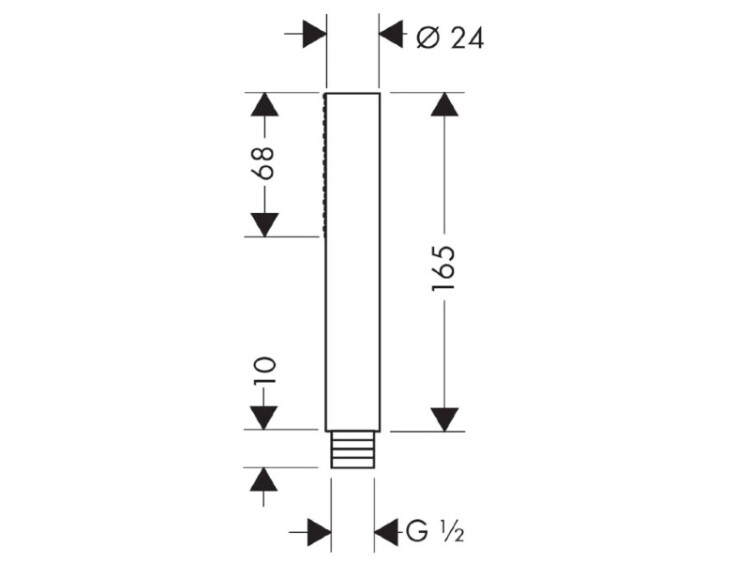 Ручной душ, Hansgrohe, Axor Starck, размер душевого диска, мм-24*68, форма-цилиндрическая, количество режимов-1, тип струи-обычная, материал-металл, цвет-сталь, промывающийся грязеулавливающий фильтр, соединительная резьба G ½ Ручной душ, Hansgrohe, Axor Starck, 24*68, цвет-сталь