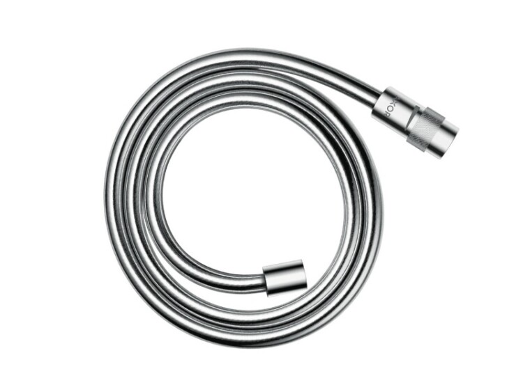 Шланг для душа, Hansgrohe, Axor Showers, длина шланга, мм-1600, материал-пластик с поверхностью под металл, стандарт подвода воды-1/2", цвет-шлифованный никель, с регулировкой напора, со стороны душа упорный подшипник, предотвращающий перекручивание душевого шланга, с защитой от изломов, с двух сторон цилиндрическая гайка Шланг для душа, Hansgrohe, Axor Showers, длина шланга, мм-1600, цвет-шлифованный никель