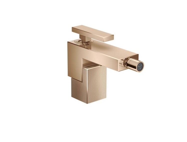 Смеситель для биде, Axor, Axor Edge, тип открывания воды-рычажный, отверстия для монтажа-1, высота, мм-136, вынос излива, мм-149, цвет-полированное красное золото, с алмазной огранкой Смеситель для биде, Axor, Axor Edge, цвет-полированное красное золото