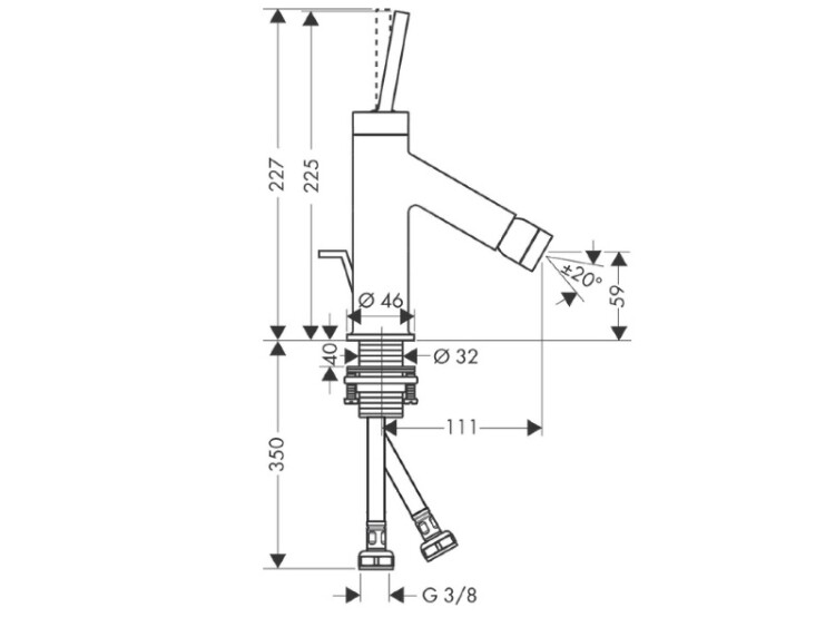 Смеситель для биде, Hansgrohe, Axor Starck, тип открывания воды-однорычажный, тип регулирования воды-керамический узел смешивания, отверстия для монтажа-1, высота, мм-225, вынос излива, мм-111, вид ручки-джойстикового типа, донный клапан-есть, тип подводки-гибкая, стандарт подвода воды-3/8", цвет-хром Смеситель для биде, Hansgrohe, Axor Starck, цвет-хром
