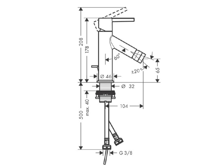Смеситель для биде, Hansgrohe, Axor Starck, тип открывания воды-однорычажный, тип регулирования воды-керамический узел смешивания, отверстия для монтажа-1, высота, мм-178, вынос излива, мм-104, донный клапан-есть, тип подводки-гибкая, стандарт подвода воды-3/8", цвет-шлифованная бронза Смеситель для биде, Hansgrohe, Axor Starck, цвет-шлифованная бронза