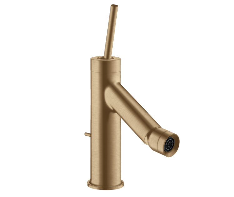 Смеситель для биде, Hansgrohe, Axor Starck, тип открывания воды-однорычажный, тип регулирования воды-керамический узел смешивания, отверстия для монтажа-1, высота, мм-225, вынос излива, мм-111, вид ручки-джойстикового типа, донный клапан-есть, стандарт подвода воды-3/8", цвет- шлифованная бронза, аэратор с шарнирным соединением Смеситель для биде, Hansgrohe, Axor Starck, цвет-шлифованная бронза