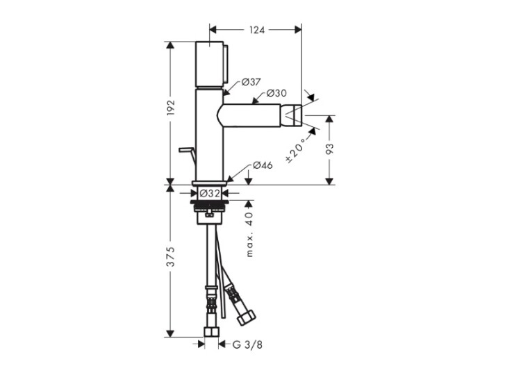 Смеситель для биде, Hansgrohe, Axor Uno, отверстия для монтажа-1, высота, мм-192, вынос излива, мм-124, донный клапан-есть, тип подводки-гибкая, стандарт подвода воды-3/8", цвет-хром, подходит для проточных водонагревателей, регулируемое ограничение температуры Смеситель для биде, Hansgrohe, Axor Uno, цвет-хром