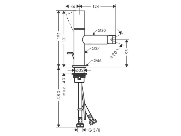 Смеситель для биде, Hansgrohe, Axor Uno, тип открывания воды-однорычажный, тип регулирования воды-керамический узел смешивания, отверстия для монтажа-1, высота, мм-191, вынос излива, мм-126, вид ручки-zero, донный клапан-есть, тип подводки-гибкая, стандарт подвода воды-3/8", цвет-сталь, аэратор с шарнирным соединением, регулируемое ограничение температуры Смеситель для биде, Hansgrohe, Axor Uno, цвет-сталь