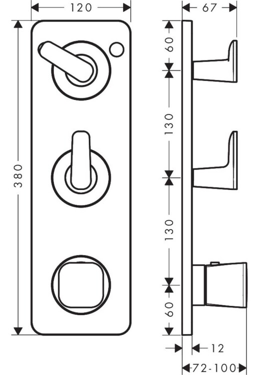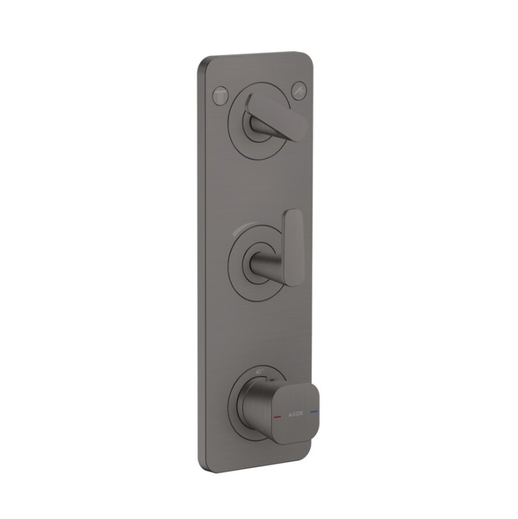 Смеситель для душа, Axor, Citterio, на 2 потребителя, тип открывания воды-однорычажный, тип регулирования воды-термостатический картридж, монтаж-настенный встраиваемый, внутренняя часть-необходимо заказать, цвет-хром черный шлифованный/брашированный (Brushed Black Chrome) Смеситель для душа, Axor, Citterio, на 2 потребителя, цвет-хром черный шлифованный/брашированный (Brushed Black Chrome)