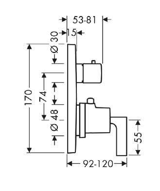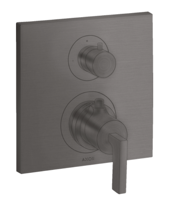 Смеситель для душа, Axor, Axor Citterio, на 2 потребителя, с запорным/переключающим вентилем, с рычаговой рукояткой, тип открывания воды-однорычажный, тип регулирования воды-термостатический картридж, монтаж-настенный встраиваемый, отверстия для монтажа-1, внутренняя часть-необходимо заказать, цвет-хром черный шлифованный Смеситель для душа, Axor, Axor Citterio, на 2 потребителя, с запорным/переключающим вентилем, с рычаговой рукояткой, цвет-хром черный шлифованный