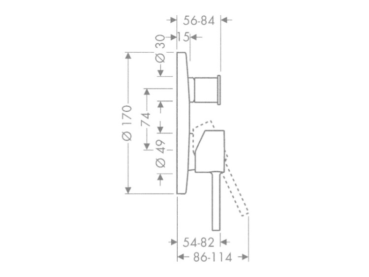 Смеситель для душа, Hansgrohe, Axor Citterio, тип открывания воды-однорычажный, тип регулирования воды-керамический узел смешивания, тип установки-встраиваемый, отверстия для монтажа-2, внутренняя часть-необходимо заказать, цвет-хром, со встроенной защитной комбинацией, с переключателем вакуумного типа Смеситель для душа, Hansgrohe, Axor Citterio, цвет-хром