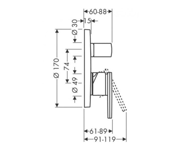 Смеситель для душа, Hansgrohe, Axor Citterio, тип открывания воды-однорычажный, тип регулирования воды-керамический узел смешивания, тип установки-встраиваемый, внутренняя часть-необходимо заказать, цвет-полированное золото, регулируемое ограничение температуры, с переключателем вакуумного типа, с шумопоглотителем Смеситель для душа, Hansgrohe, Axor Citterio, цвет-полированное золото