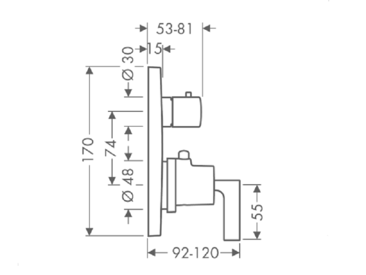 Смеситель для душа, Hansgrohe, Axor Citterio, тип регулирования воды-термостатический картридж, тип установки-встраиваемый, внутренняя часть-необходимо заказать, цвет-шлифованная бронза, 2 потребителя, с запорным и переключающим вентилем, предохранительный ограничитель при 38°C, регулируемое ограничение температуры, с шумопоглотителем Смеситель для душа, Hansgrohe, Axor Citterio, цвет-шлифованная бронза