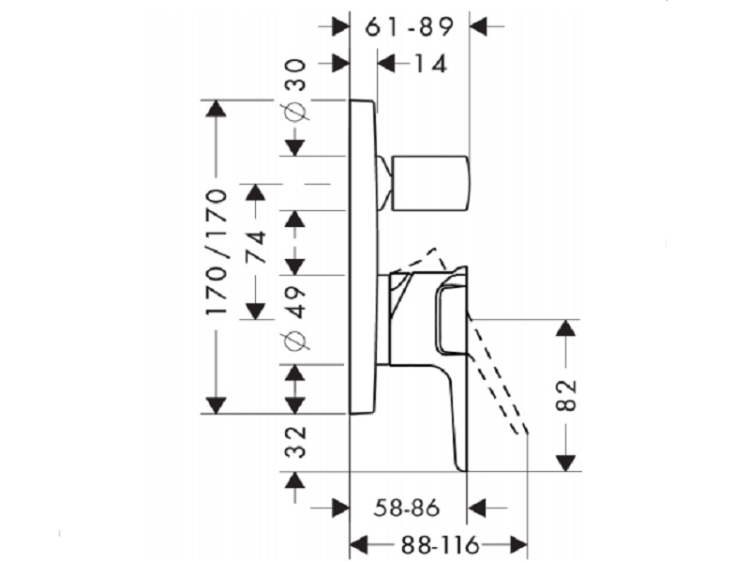 Смеситель для душа, Hansgrohe, Axor Citterio E, тип открывания воды-однорычажный, тип регулирования воды-керамический узел смешивания, тип установки-встраиваемый, внутренняя часть-необходимо заказать, цвет-полированное красное золото, регулируемое ограничение температуры, с переключателем вакуумного типа, с шумопоглотителем Смеситель для душа, Hansgrohe, Axor Citterio E, цвет-полированное красное золото