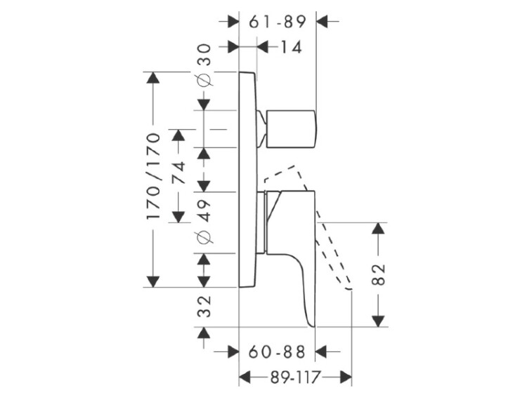 Смеситель для душа, Hansgrohe, Axor Citterio M, тип открывания воды-однорычажный, тип регулирования воды-керамический узел смешивания, тип установки-встраиваемый, отверстия для монтажа-2, внутренняя часть-необходимо заказать, цвет-хром, со встроенной защитной комбинацией, с переключателем вакуумного типа Смеситель для душа, Hansgrohe, Axor Citterio M, цвет-хром