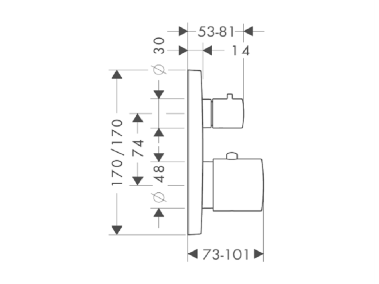 Смеситель для душа, Hansgrohe, Axor Citterio M, тип регулирования воды-термостатический картридж, тип установки-встраиваемый, внутренняя часть-необходимо заказать, цвет-шлифованный никель, с запорным вентилем, 1 потребитель, регулируемое ограничение температуры, с шумопоглотителем Смеситель для душа, Hansgrohe, Axor Citterio M, цвет-шлифованный никель
