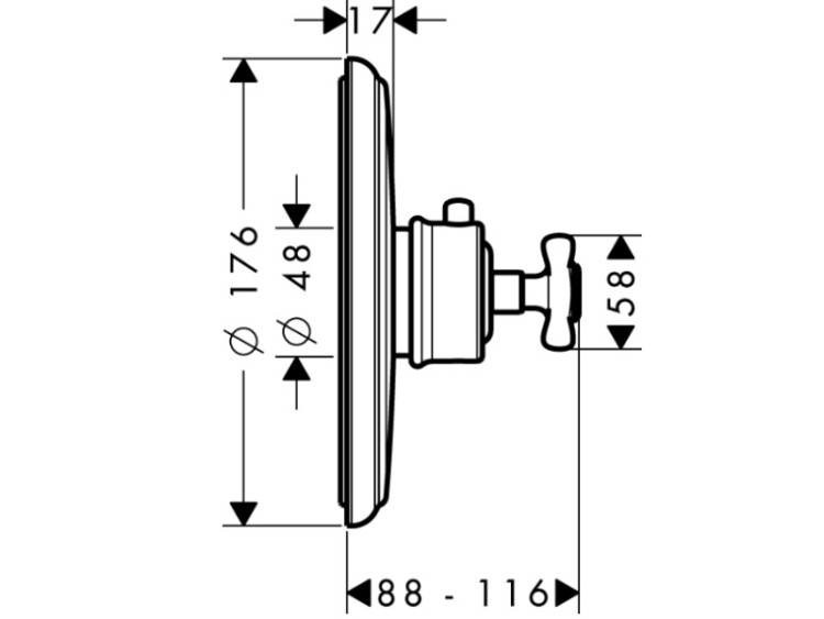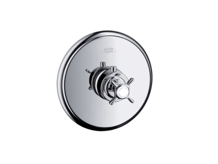 Смеситель для душа, Hansgrohe, Axor, тип открывания воды-вентильный, тип регулирования воды-термостатический картридж, тип установки-встраиваемый, отверстия для монтажа-1, внутренняя часть-необходимо заказать, цвет-шлифованный никель, предохранительный ограничитель при 40°C, регулируемое ограничение температуры, клапан обратного тока воды, с шумопоглотителем Смеситель для душа, Hansgrohe, Axor, цвет-шлифованный никель
