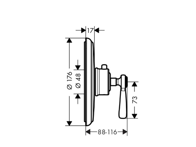 Смеситель для душа, Hansgrohe, Axor Montreux, тип открывания воды-однорычажный, тип регулирования воды-термостатический картридж, тип установки-встраиваемый, внутренняя часть-необходимо заказать, цвет-хром, материал-металл Смеситель для душа, Hansgrohe, Axor Montreux, цвет-хром