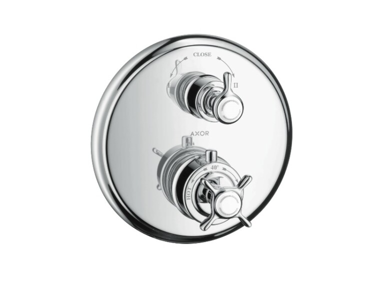 Смеситель для душа, Hansgrohe, Axor Montreux, тип регулирования воды-термостатический картридж, тип установки-встраиваемый, отверстия для монтажа-2, внутренняя часть-необходимо заказать, цвет-хром, 1 потребитель, с запорным вентилем, предохранительный ограничитель при 40°C, регулируемое ограничение температуры, клапан обратного тока воды, с шумопоглотителем Смеситель для душа, Hansgrohe, Axor Montreux, цвет-хром