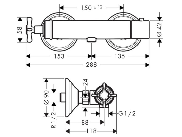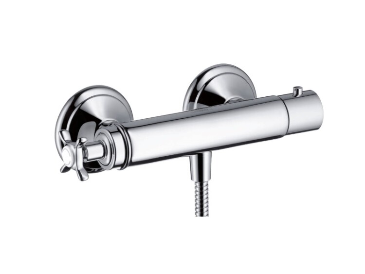 Смеситель для душа, Axor, Axor Montreux, на 1 потребитель, тип открывания воды-вентильный, с крестообразной рукояткой, тип регулирования воды-термостатический картридж, монтаж-настенный, отверстия для монтажа-2, клапан обратного тока воды с шумопоглотителем, цвет-хром Смеситель для душа, Axor, Axor Montreux, на 1 потребитель, с крестообразной рукояткой, цвет-хром
