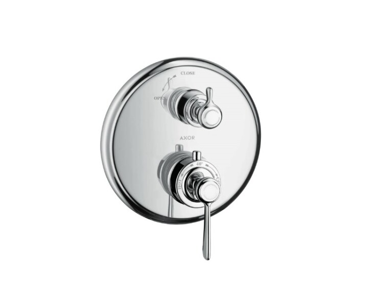 Смеситель для душа, Hansgrohe, Axor Montreux, тип регулирования воды-термостатический картридж, тип установки-встраиваемый, внутренняя часть-необходимо заказать, цвет-полированное красное золото, с запорным вентилем, с рычаговой рукояткой, 1 потребитель Смеситель для душа, Hansgrohe, Axor Montreux, цвет-полированное красное золото