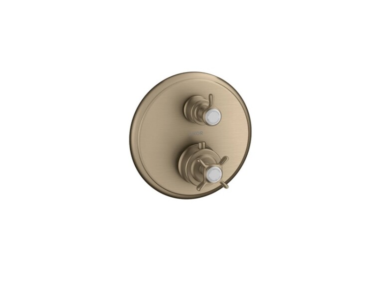 Смеситель для душа, Hansgrohe, Axor Montreux, тип регулирования воды-термостатический картридж, тип установки-встраиваемый, отверстия для монтажа-2, внутренняя часть-необходимо заказать, цвет-шлифованный никель, 1 потребитель, с запорным вентилем, предохранительный ограничитель при 40°C, регулируемое ограничение температуры, клапан обратного тока воды, с шумопоглотителем Смеситель для душа, Hansgrohe, Axor Montreux, цвет-шлифованный никель
