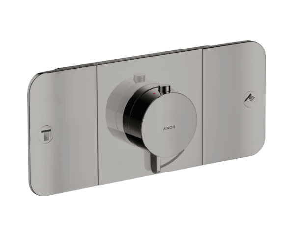 Смеситель для душа, Axor, Axor One, на 2 потребителя, тип открывания воды-одновентильный, тип регулирования воды-термостатический картридж, тип установки-встраиваемый настенный, внутренняя часть-необходимо заказать, цвет-полированный чёрный хром Смеситель для душа, Axor, Axor One, цвет-полированный чёрный хром