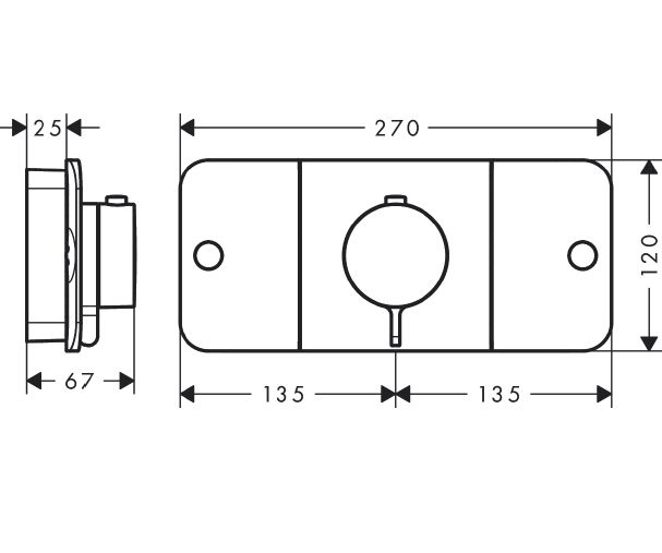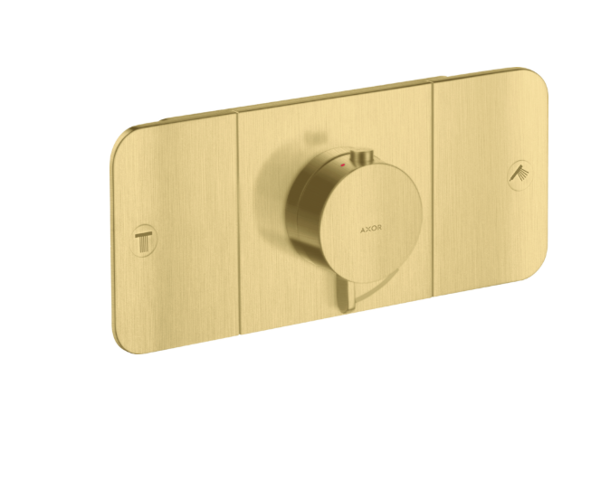 Смеситель для душа, Axor, Axor One, тип регулирования воды-термостатический картридж, тип установки-встраиваемый, отверстия для монтажа-1, внутренняя часть-необходимо заказать, цвет-шлифованная медь, 2 потребителя и 1 дополнительный потребитель, включение/выключение потребителей большой кнопкой Select, предохранительный ограничитель при 40°C, регулируемое ограничение температуры, термостат с возможностью термической дезинфекции Смеситель для душа, Axor, Axor One, цвет-шлифованная медь