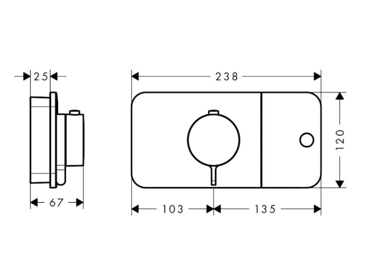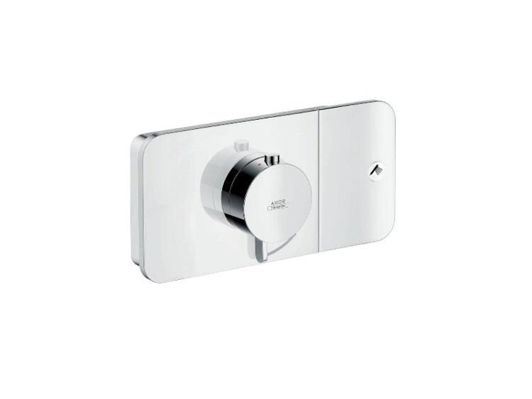 Смеситель для душа, Axor, Axor One, тип регулирования воды-термостатический картридж, тип установки-встраиваемый, отверстия для монтажа-1, внутренняя часть-необходимо заказать, цвет-шлифованное красное золото, 1 потребитель и 1 дополнительный потребитель, включение/выключение потребителей большой кнопкой Select, предохранительный ограничитель при 40°C, регулируемое ограничение температуры, термостат с возможностью термической дезинфекции Смеситель для душа, Axor, Axor One, цвет-шлифованное красное золото