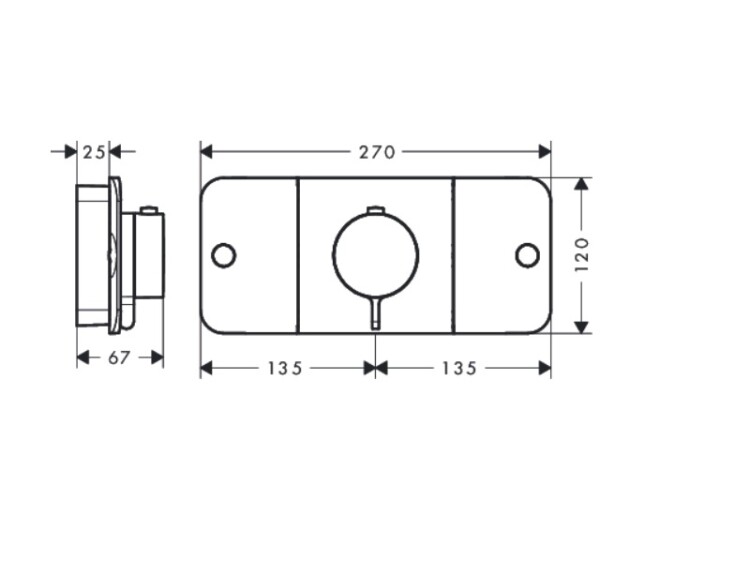 Смеситель для душа, Axor, Axor One, тип открывания воды-одновентильный, тип регулирования воды-термостатический картридж, тип установки-встраиваемый, внутренняя часть-необходимо заказать, цвет-шлифованный черный хром, на 2 потребителя Смеситель для душа, Axor, Axor One, цвет-шлифованный черный хром