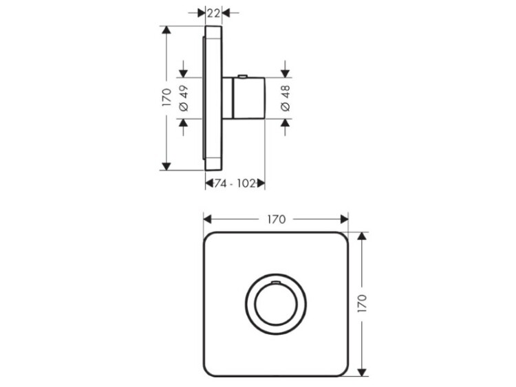 Смеситель для душа, Hansgrohe, Axor ShowerSelect, тип регулирования воды-термостатический картридж, тип установки-встраиваемый, отверстия для монтажа-1, внутренняя часть-необходимо заказать, цвет-хром, предохранительный ограничитель при 40°C, регулируемое ограничение температуры Смеситель для душа, Hansgrohe, Axor ShowerSelect, цвет-хром