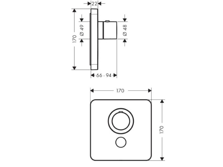 Смеситель для душа, Hansgrohe, Axor ShowerSelect, Highflw, тип регулирования воды-термостатический картридж, тип установки-встраиваемый, отверстия для монтажа-1, внутренняя часть-необходимо заказать, цвет-хром, для 1 потребителя, с клапаном для ручного душа Смеситель для душа, Hansgrohe, Axor ShowerSelect, цвет-хром