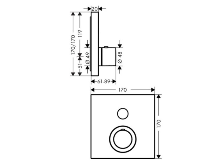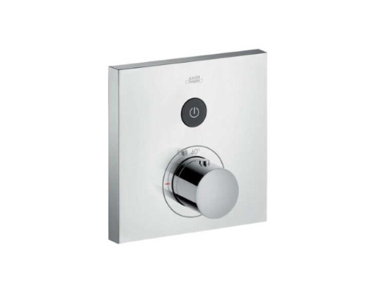 Смеситель для душа, Hansgrohe, Axor ShowerSelect, тип регулирования воды-термостатический картридж, тип установки-встраиваемый, отверстия для монтажа-1, внутренняя часть-необходимо заказать, цвет-хром, 1 потребитель, кнопка Select включения/выключения, предохранительный ограничитель при 40°C, регулируемое ограничение температуры Смеситель для душа, Hansgrohe, Axor ShowerSelect, цвет-хром