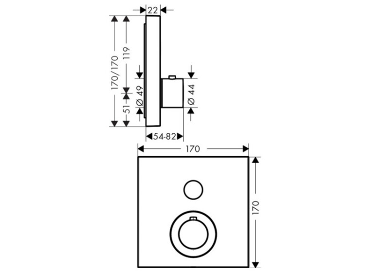 Смеситель для душа, Hansgrohe, Axor ShowerSelect, тип регулирования воды-термостатический картридж, тип установки-встраиваемый, отверстия для монтажа-1, внутренняя часть-необходимо заказать, цвет-полированное золото, 1 потребитель, кнопка Select включения/выключения, предохранительный ограничитель при 40°C, регулируемое ограничение температуры Смеситель для душа, Hansgrohe, Axor ShowerSelect, цвет-полированное золото