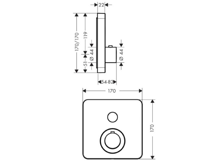 Смеситель для душа, Hansgrohe, Axor ShowerSelect, тип регулирования воды-термостатический картридж, тип установки-встраиваемый, отверстия для монтажа-1, внутренняя часть-необходимо заказать, цвет-шлифованное красное золото, 1 потребитель, кнопка Select включения/выключения, предохранительный ограничитель при 40°C, регулируемое ограничение температуры Смеситель для душа, Hansgrohe, Axor ShowerSelect, цвет-шлифованное красное золото