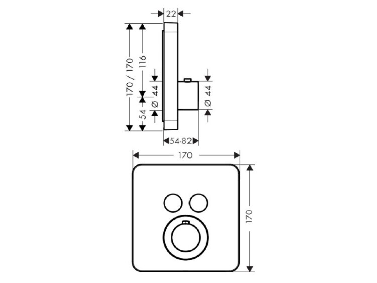 Смеситель для душа, Hansgrohe, Axor ShowerSelect, тип регулирования воды-термостатический картридж, тип установки-встраиваемый, отверстия для монтажа-1, внутренняя часть-необходимо заказать, цвет-шлифованный черный хром, 2 потребителя, кнопка Select включения/выключения, редохранительный ограничитель при 40°C, регулируемое ограничение температуры Смеситель для душа, Hansgrohe, Axor ShowerSelect, цвет-шлифованный черный хром