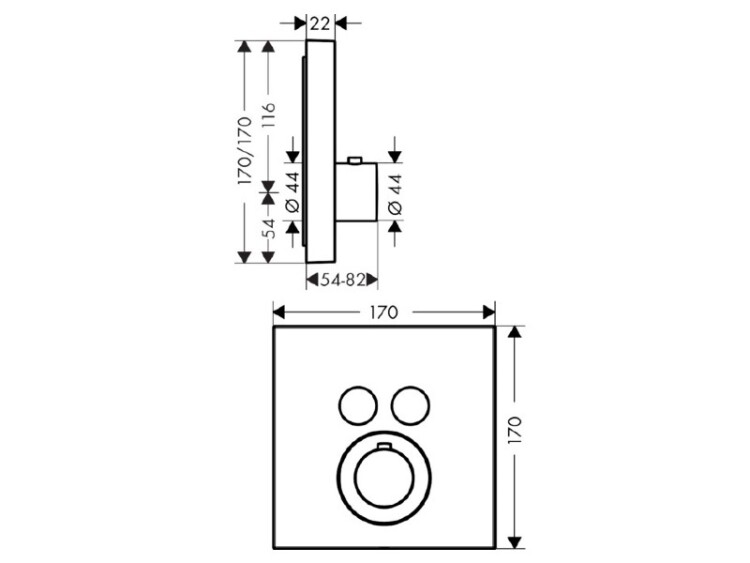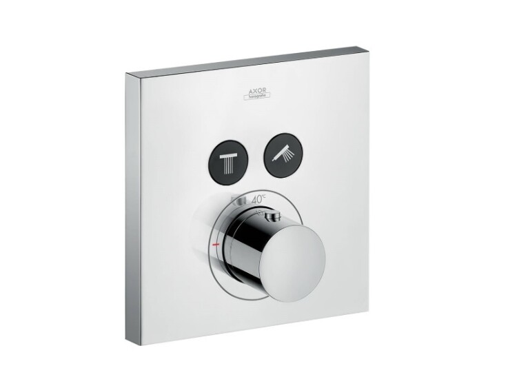 Смеситель для душа, Hansgrohe, Axor ShowerSelect, тип регулирования воды-термостатический картридж, тип установки-встраиваемый, отверстия для монтажа-1, внутренняя часть-необходимо заказать, цвет-шлифованный черный хром, 2 потребителя, кнопка Select включения/выключения, предохранительный ограничитель при 40°C, регулируемое ограничение температуры Смеситель для душа, Hansgrohe, Axor ShowerSelect, цвет-шлифованный черный хром
